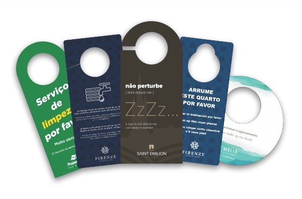Avisos de porta em diversos formatos personalizados para seu hotel.