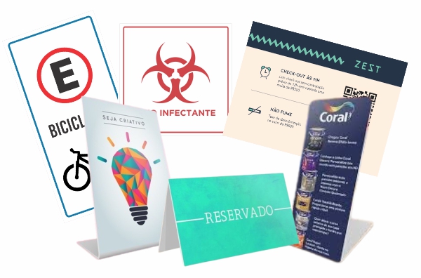 Displays e placas de sinalização em PVC e PS para sua empresa ou evento.