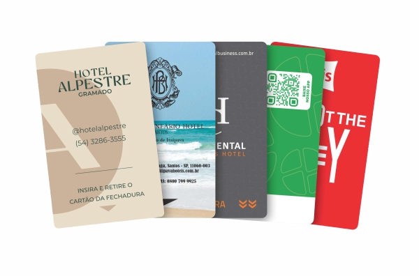 Cartões-chave em PVC com RFID ou Tarja Magnética.